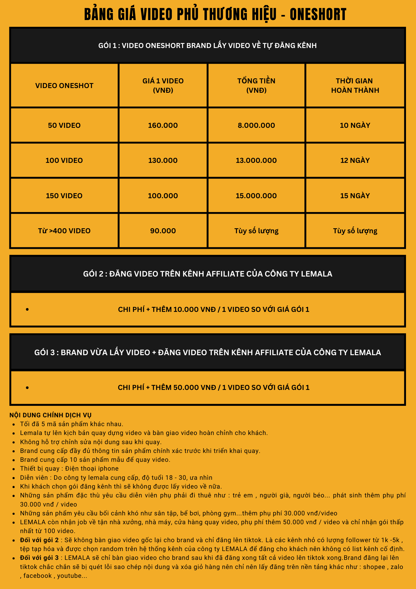 - Làm tiktok việc xây kênh gần như là bắt buộc phải làm nếu muốn phát triển đường dài. Có thể tự làm video để xây kênh vừa tăng độ nhận diện, tiếp cận khách hàng, có chuyển đổi đơn hàng luôn lại vừa xây được thương hiệu rất tốt. Nhưng nếu bạn không có thời gian sản xuất video, ngại xuất hiện hoặc thậm trí là không biết làm video thì có thể chọn phương án đi thuê bên dịch vụ chuyên nghiệp làm video nhưng phải tối ưu được chi phí tốt nhất ( ví dụ nhu bên mình là công ty TNHH LEMALA )